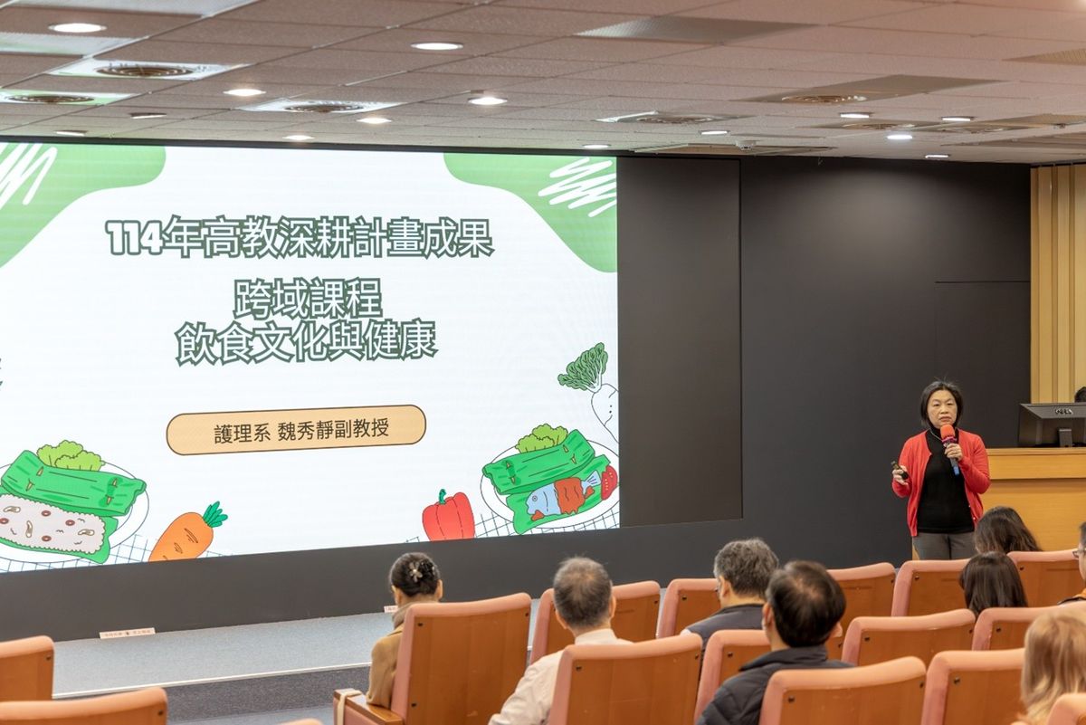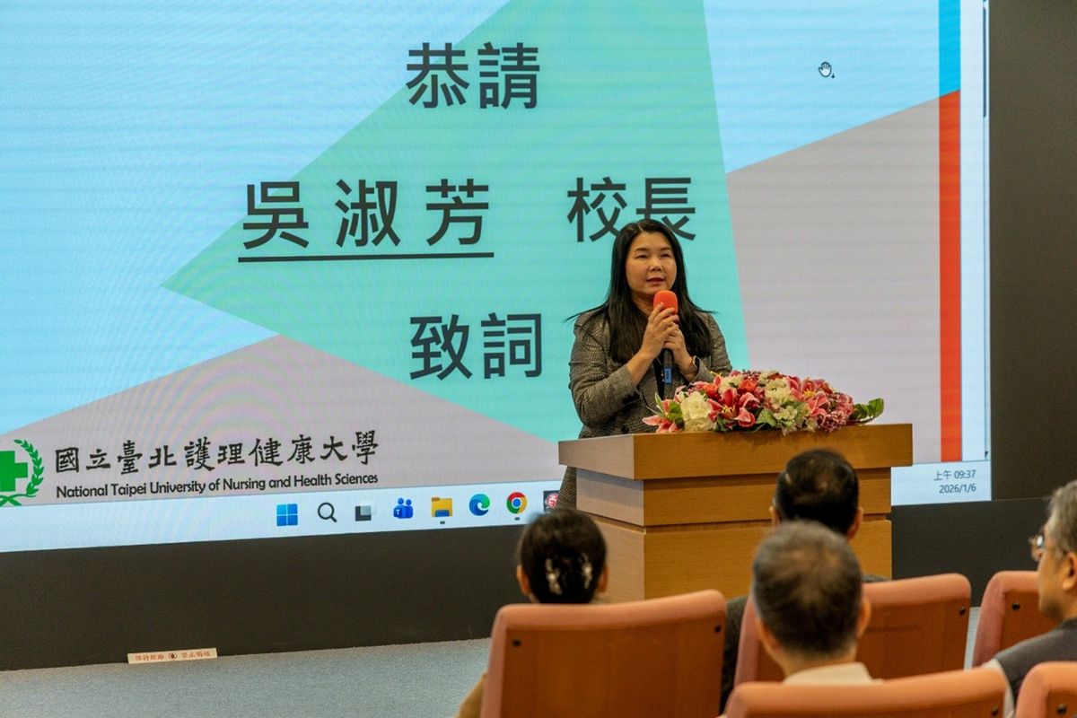 校本部成果展於1月6日上午9時30分在親仁樓B118舉行。開幕式由吳淑芳校長致詞揭開序幕。吳校長表示,114年北護大順利完成高教深耕第二期計畫審查作業,並獲教育部核定補助新臺幣1億911萬元,較前一年成長10.8%,顯示教育部對本校整體辦學品質與發展方向的高度肯定,並強調,高教深耕計畫已逐步深化為校務治理與教學創新的重要制度基礎。