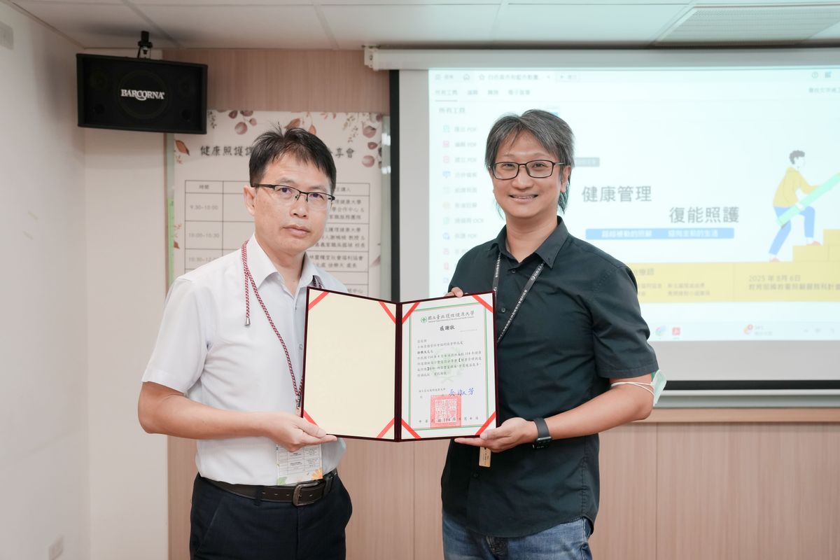 此次分享會藉由專題講座、機構參訪與實務體驗,協助教師強化專業知能,進而帶動課程創新與教學品質提升。研習課程安排多元,士林靈糧堂社會福利協會新北處徐樂天處長以「健康管理與復能照護」為題,分享跨專業團隊合作經驗;新北市三重新穀日照中心林芯妤督導及台北市西湖日照中心丁慧雯督導,分別就日照中心籌設與經營實務進行分享,讓教師能將第一線實務經驗融入課程設計中。