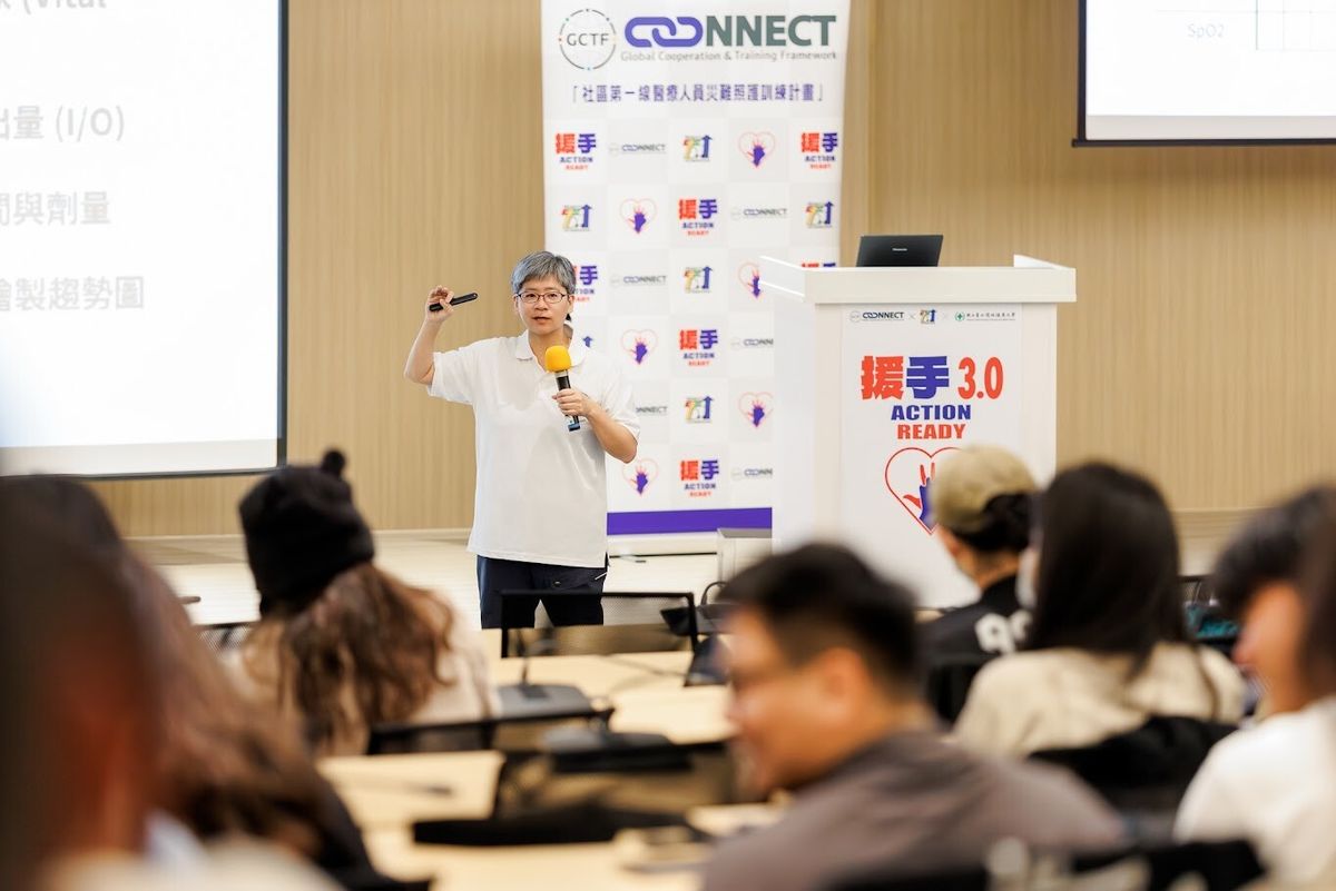 計畫主持人部立桃園醫院災難醫學科主任蕭雅文醫師於致詞時特別強調,護理人員在災難應變中扮演著極為關鍵的角色;能將全國第一場援手3.0培訓活動,安排在國內護理訓練的重要殿堂—北護大舉辦,不僅別具意義,更象徵著災難防護網向下紮根的決心。