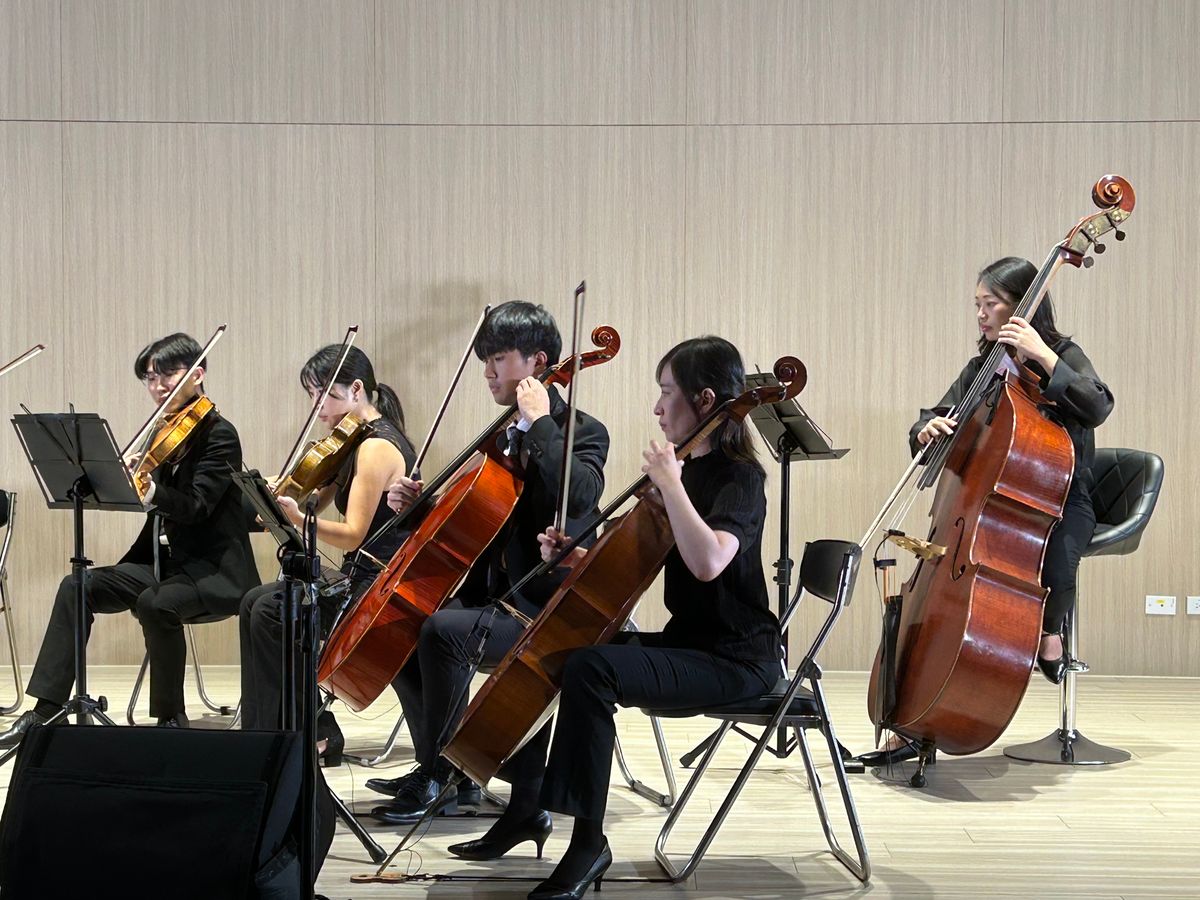 1998年成軍的樂興之時管絃樂團,由一群國內最頂尖且才華洋溢的音樂家組成,本次演出陣容堅強,包括第一小提琴手的楊俊傑、林暘;第二小提琴手的呂昉、張震;中提琴的楊景婷、徐浩源;大提琴的吳妮燕、伊藤尚維;低提琴的陳美君,並由本校黃渼娟老師擔當電鋼琴演奏,共同呈現精彩演奏。