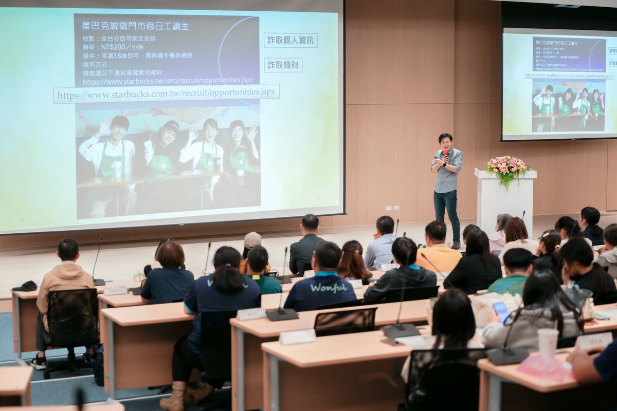 ▲ 1111人力銀行黃豐雄講師蒞校,分享網路求職安全與履歷投遞攻略。