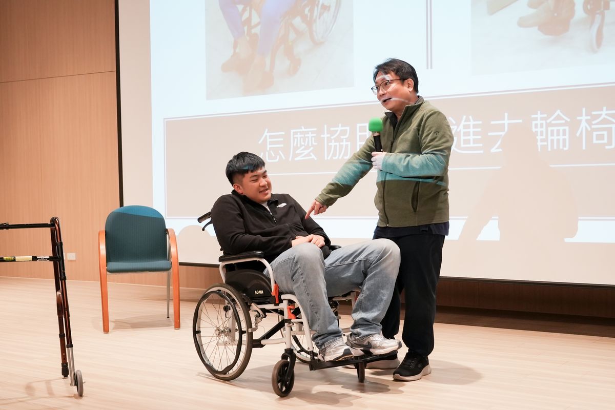 ▲ 新北市輔具資源中心 楊忠一主任親自示範輔具應用。