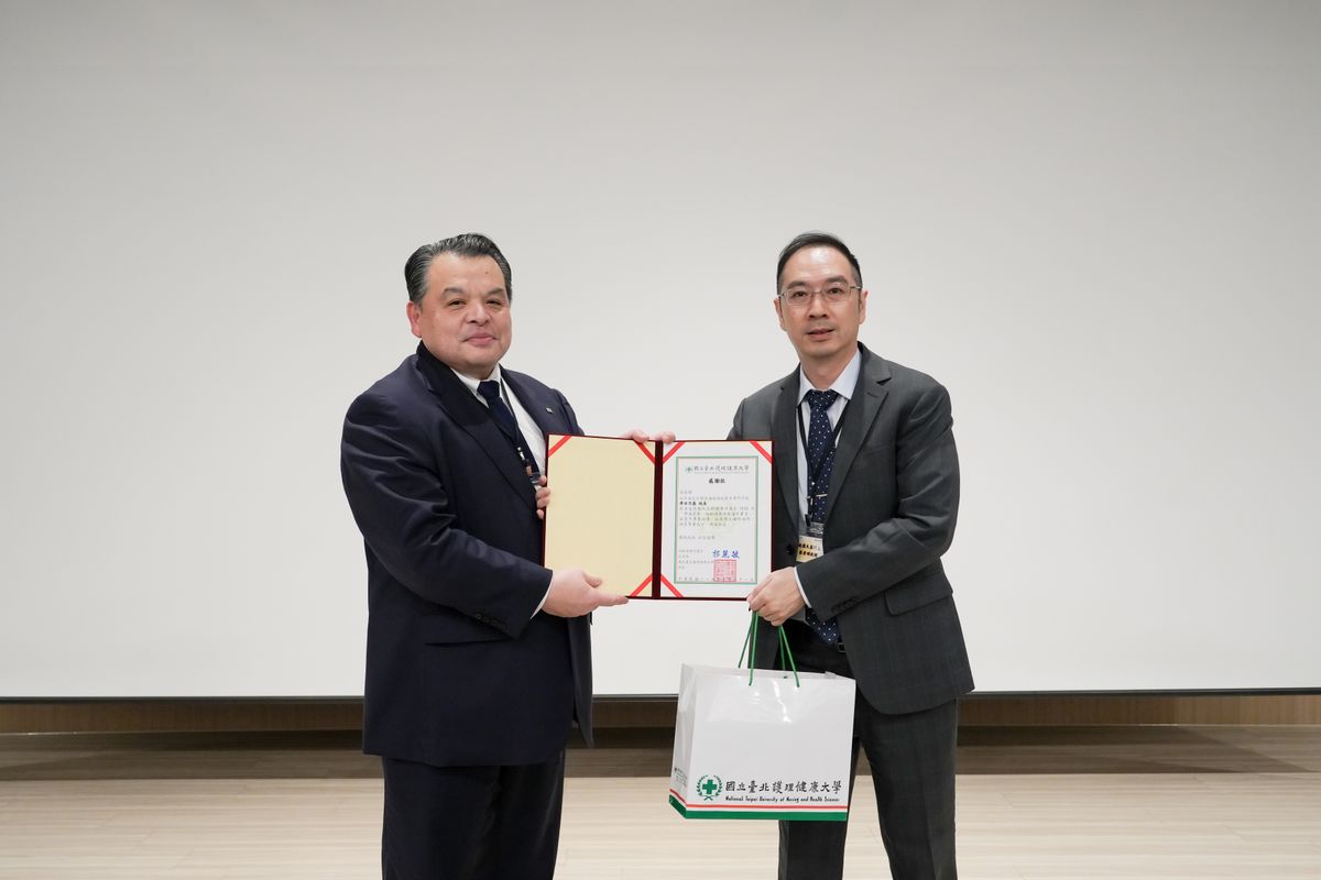 ▲ 北護大蔡君明教務長代表頒贈澤田校長感謝狀。